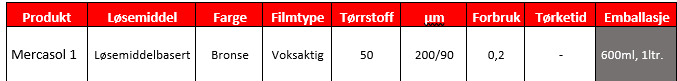 Mercasol 1 er et voks-, og oljebasert tynnstoff, med svært høy andel rustinhibitorer.